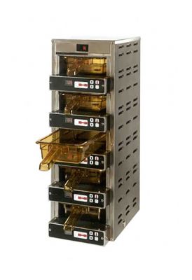Modular holding cabinet has 5 individually temp. controlled modules.