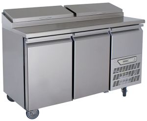 Double door pizza preparation counter. Chills -2 to 8 oC.