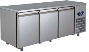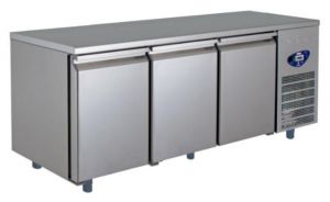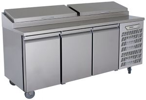 Triple door pizza preparation counter. Chills -2 to 8 oC.