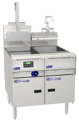 Single tank twin basket fryer with computer control.