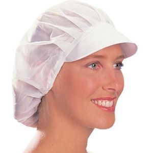 One size. Features net back and cotton peak.