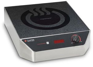 The magnetic coil underneath the induction cooker remains cool until the pan is placed on top.