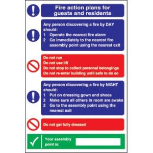 4. Fire Instructions For Guests & Residents Sign (Self-Adhesive)
