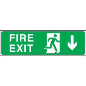13. Fire Exit. Through Door. Arrow Down Sign - 150x450mm (Self Adhesive)
