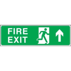 12. Fire Exit. Straight On. Arrow Up. Sign - 150x450mm (Self-Adhesive)
