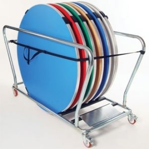 Furniture trolleys for transporting folding furniture.