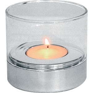 1. Tea Light Holder with Glass St/St - 8x2.5cmH