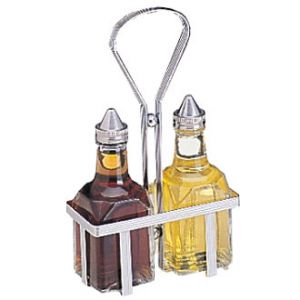Cruet sets, cruet holders, sauce and dressing dispensers, tabletop bins.