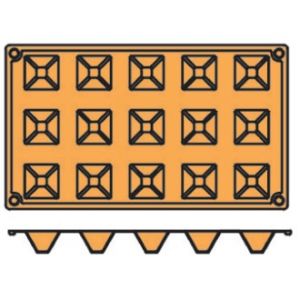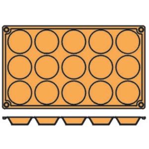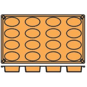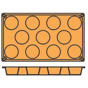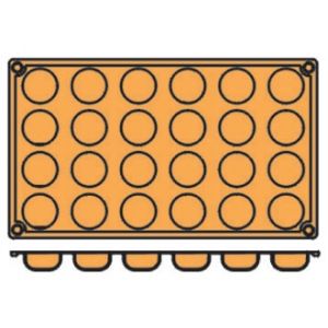 Non-stick, moulds allow patisseries to be simply pushed out, an excellent substitute for metal trays. Ideal for pastry shops. 1/3 gastronorm size. Dishwasher safe and suitable for oven to freezer use. HACCP approved.